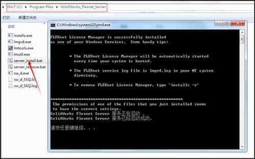 4.右键单击文件Run as _install.bat,直到显示SolidWorks Flexnet已经成功启动,该文件的默认位置为SolidWorks _ Flexnet _ server _ install . bat。