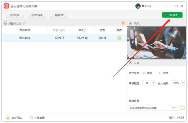金舟图片无损放大软件下载,划时代的专业影像智能无损放大工具,金舟影像无损放大(智能影像放大工具)可以为你带来更便捷更快速的影像放大方法,而各种算法和技术的综合加持可以让你拥有更好的影像放大优化算法,所有影像都具有更高的质量,轻松无损放大和自动调整影像数据。