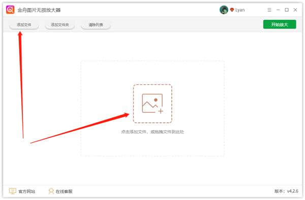 第一步是打开电脑中的软件,选择添加图片进行放大。图片的添加方式有两种:一种是点击添加文件或文件夹,另一种是直接点击界面中间的“+”键选择添加。