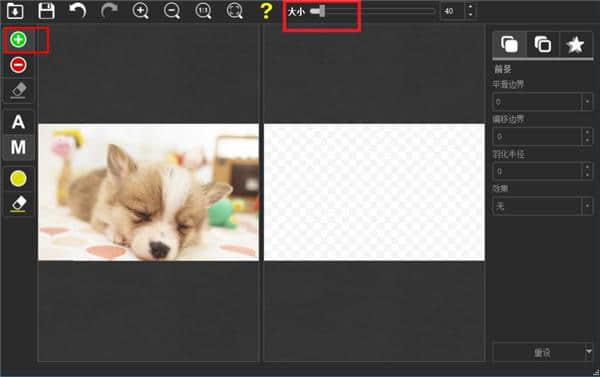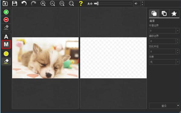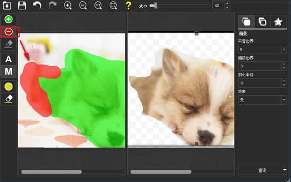 5.用户点击前景按钮“前景”的功能类似于选择画笔的工具。用户可以在大小按钮的列中选择要扣除的内容并调整前景半径。