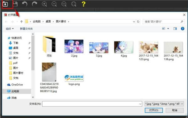 2.我们单击“打开图像”按钮,从输出选项中选择要修饰的图像文件,该文件支持多种常见格式。