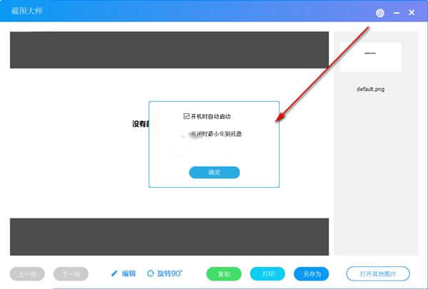 2.打开设置界面,设置为开机自动启动,关机最小化到托盘。