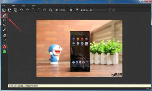 1.启动软件,添加图片,点击工具栏中的“画笔”。