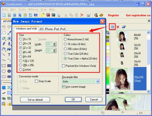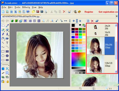 2.创建和编辑标准大小和自定义大小的图标,颜色深度可以达到32位真彩色。