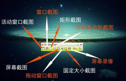 2.软件的菜单有八个截图按钮,可以看到菜单按钮下的提示。