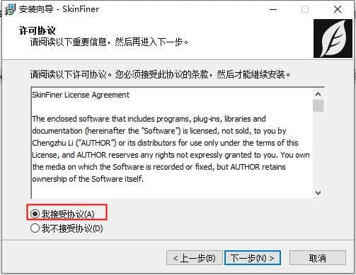 1.单击skinfiner.exe开始安装原始程序,并检查许可协议。