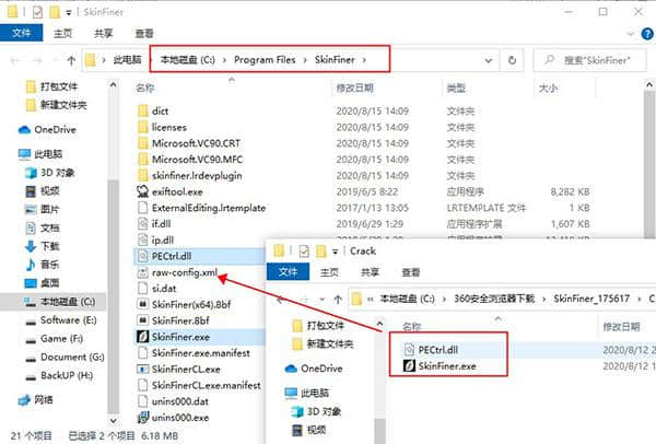 4.接下来,用默认安装路径替换crack文件夹中的所有文件。