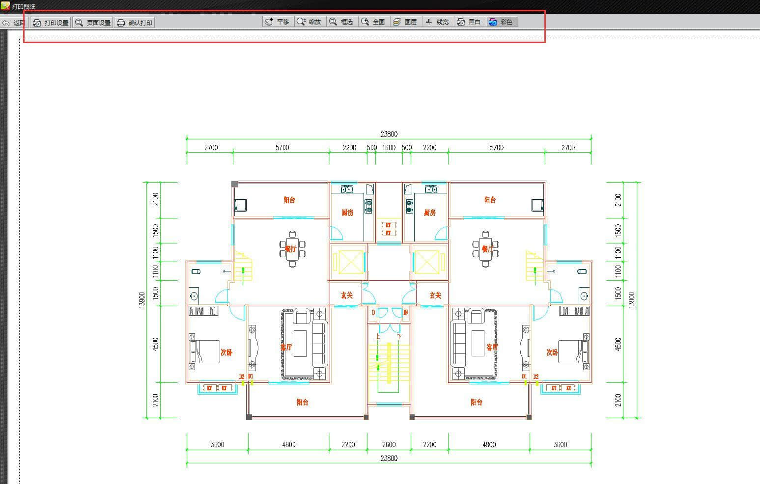 3.根据自己的需要设置后,可以点击“确认打印”按钮开始打印,确认电脑和打印机连接成功后再打印。还有一个小点需要注意的是,我们在打印的时候需要将打印颜色改为黑白,这样打印出来的图纸才清晰,很多CAD图纸都是用彩色绘制的,打印没有黑白打印清晰。