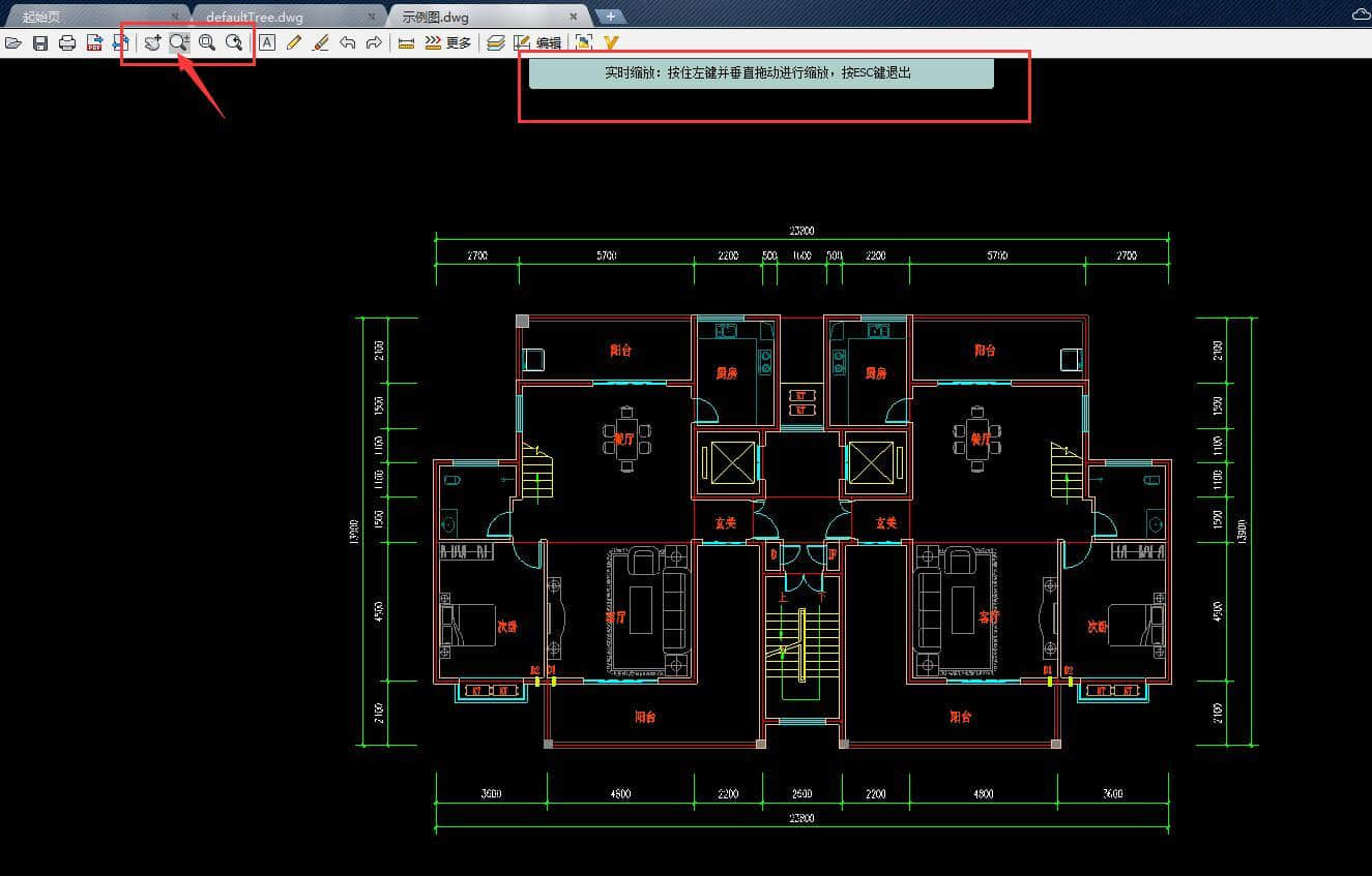 CAD迷你看图查看dwg格式文件,我们可以自由缩放。鼠标滚轮控制或文件导航有加号或减号控制!