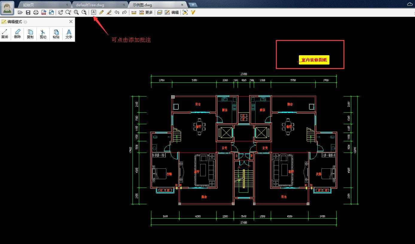 使用CAD迷你看图查看图片,也可以添加评论。单击图标A的选项,并在您想要进行注释的地方输入文本。