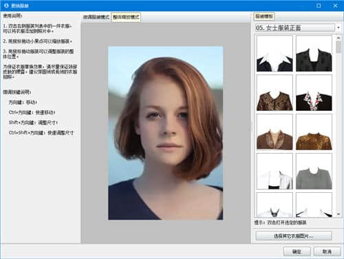 双击一件衣服,根据“微调按钮说明”进行调整。调整后,点击“确定”。