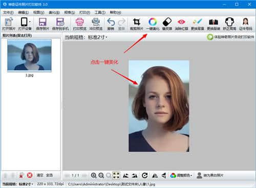 4.一键美化照片,点击工具栏中的“一键美化”按钮美化照片。效果如下图所示: