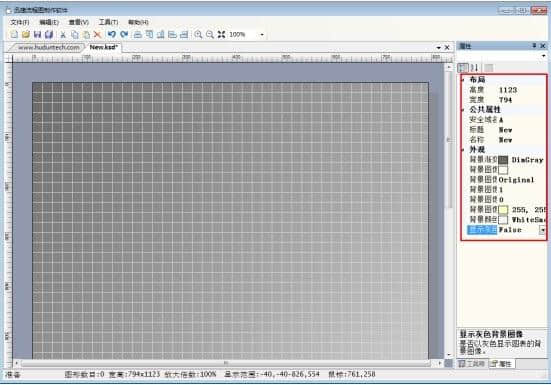 5.这时我们可以看到“布局”、“公共属性”和“外观”的设置。如果需要设置编辑页面的布局,设置其高度和宽度;如果需要编辑背景颜色,请在“外观”上单击相应的背景属性并进行设置。