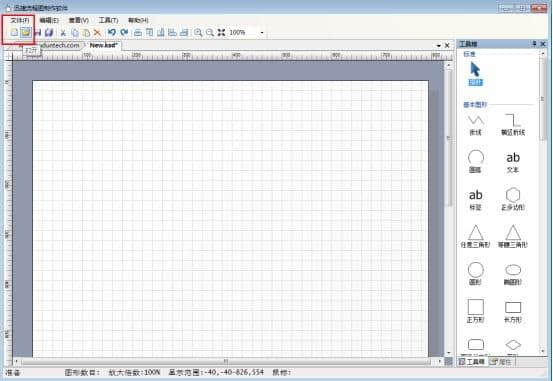 2.在软件界面点击“文件-新建”,新建编辑页面。如果要修改原流程图,可以选择“文件-打开”在软件上打开流程图文件。