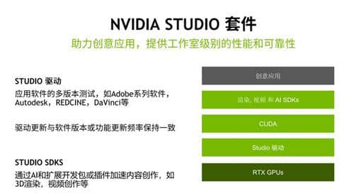NVIDIAStudio驱动程序是一款为创作者和3D用户提供最佳性能和可靠性的显卡驱动软件。StudioDrivers为多应用创作者做了大量的工作流程,对从Adobe到Autodesk的顶级创意应用进行了多次修改,进而获得最高的可靠性。