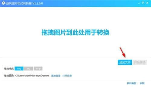 打开旋风图片格式转换器拖动或点击“添加文件”按钮,将需要转换的文件添加到转换列表中进行转换,如下图所示: