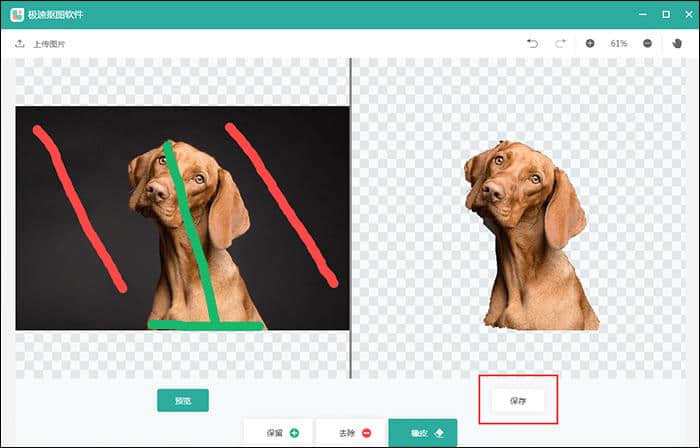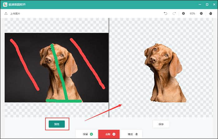 4.支持预览功能。设置后,您可以查看抠图内容并直接保存。