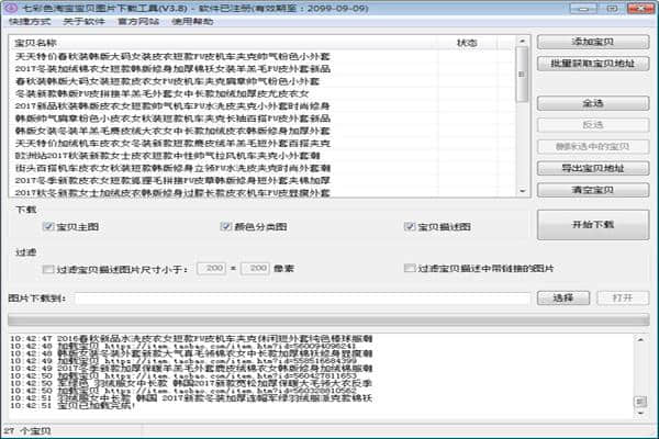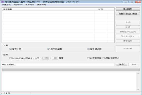 七色宝宝图是一款图片管理软件。下载宝宝主图、分类图、属性图、宝宝图描述,从天猫下载主图。可以一次添加多个宝贝地址批量下载宝贝图片和主图,也是一个主图下载工具。