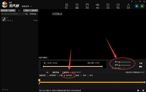 在镜头的“音乐”栏中导入一段音乐,并将音乐拖到右侧。