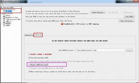 5.关闭TinyUmbrella,再次打开,选择你的iPhone,点击保存SHSH保存。