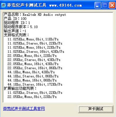 莽荒纪声卡工具是款非常简单易用的声卡检测软件。莽荒纪声卡工具使用简单,操作方便,一键帮助用户获取本机上的声卡,同时还能够对声卡进行检测,查看声卡是否完好。