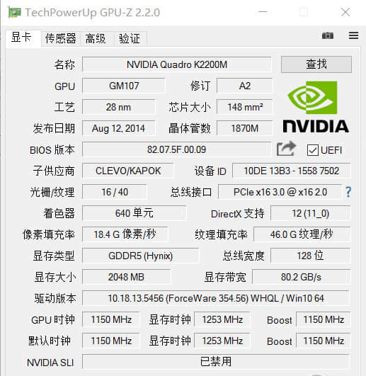 3.检查GPU内核、着色器和视频内存的运行频率,视频内存的类型、大小和带宽。