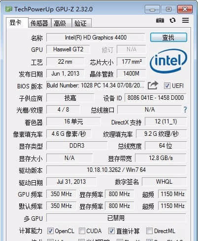 4.检查GPU内核、着色器和视频内存的运行频率,视频内存的类型、大小和带宽。