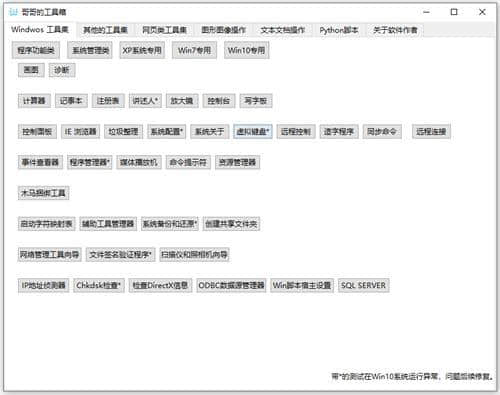 哥哥的工具箱支持如下操作系统:WindowsXP,Windows7,Windows8,Windows10,Windows11