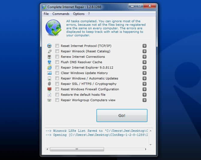 Complete Internet Repair 软件特色