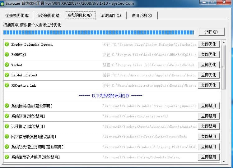 ScWozer优化工具可以优化电脑上一些常用的设置。