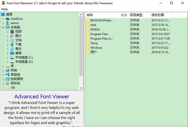 Free Font Renamer官方版免费下载是系统软件分类免费修改字体格式的使用方法:选择一个字体文件夹电脑软件,创佳软件园小编给大家送上Free Font Renamer软件下载和相关介绍,总体来说Free Font RenamerV2.1.0.0软件通常比较操作简单容易上手,是很多用户必备选择,大家可以来创佳软件园下载!
