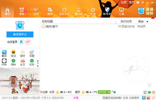 美捷闹钟是一款桌面报警工具,帮助用户管理时间。美捷闹钟虽然体积小,但是功能齐全。可以为用户提供时间检查、调度等功能,支持定时执行、定时等操作。非常实用。