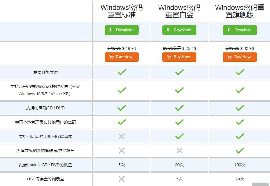 这种Windows密码恢复几乎与所有Windows操作兼容。可以在Windows 10、8.1、8、Windows 7、Vista、XP、NT等平台轻松使用。还支持Windows Sever 2012、2011、2008、2003等。