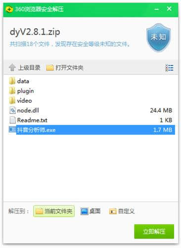 1.下载并解压缩,双击抖音分析师。exe程序打开。