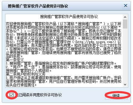 2.进入软件产品许可协议界面,阅读后检查我是否已经阅读并同意,点击继续。