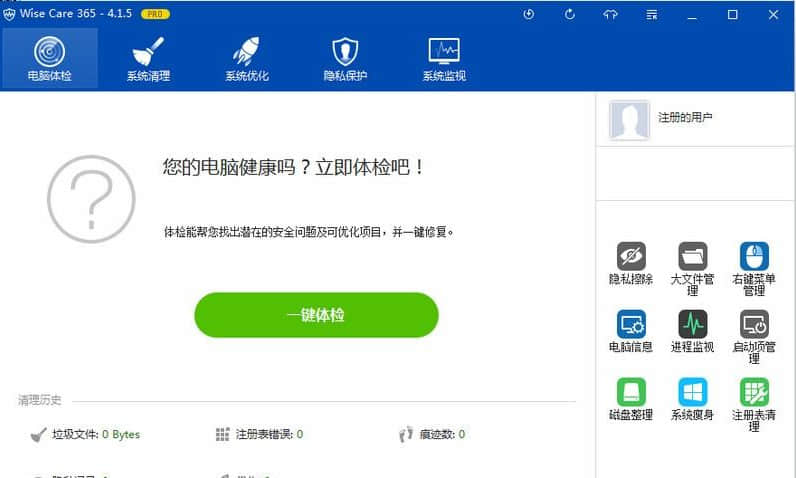 智能优化工具C Wise Care 365的四大特点详细描述如下:1。电脑体检——有了这个功能,可以优化和修复窗口;一键点击;