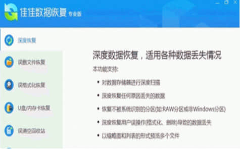 佳佳的数据恢复非常好用,功能强大,恢复能力强。兼容windows的各种操作平台。使用该软件,可以完美恢复硬盘、u盘、存储卡等各种存储设备的数据。