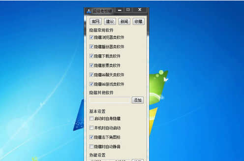 超级老板键破解版是指定诺用户设计的老板键隐藏工具。超级老板键破解版和其他同类不一样的是采用最强内核技术可以很好保持软件窗口隐藏效果,让用户软件窗口操作隐藏更自然流畅,是用户隐藏窗口操作最需要的哈比赛。