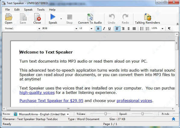 文字转语音软件破解版是非常专业的电脑文字语音转换工具。文字转语音软件破解版主要为用户的文字内容提供真人语音朗读,并为这个文字内容加上一些有趣特效,让内容读起来很有特色。