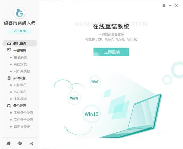 极客装机软件下载,这里有一个非常实用的重装工具,主要是一键组装操作,这为用户带来了很多简化的操作流程。极客安装的软件支持多种不同种类,无需我们手动选择即可快速匹配相关操作,为您的电脑带来各种优化的流程。
