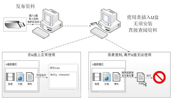 4.无法打印防复制u盘中的文件;不能将文件内容放在u盘外;