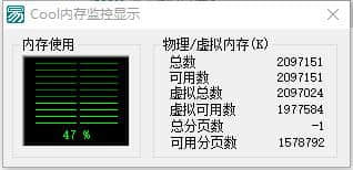 Cool内存监控显示器软件下载,一个超实用的辅助工具,可以实时监控占用的空间,让我们可以清楚的查看当前的网络状态。Cool内存监控显示器这里的每个程序都可以有一个非常快的运行通道,启动非常方便,保持良好的运行。