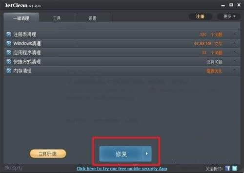3.“修复”完成扫描结果的修复和垃圾的清理。