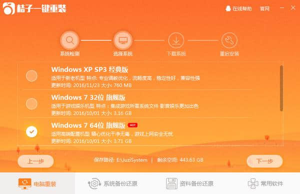 桔子一键重装软件特色