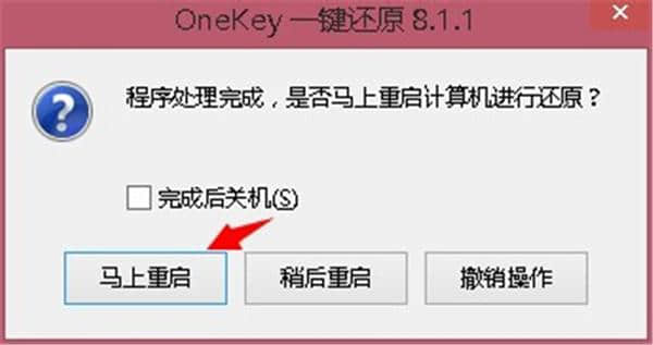3.程序处理完成,即onekey备份还原的文件释放到驱动器c,计算机重启后,onekey会自动启动。确定点击“立即重启”,不想操作点击“撤销操作”。
