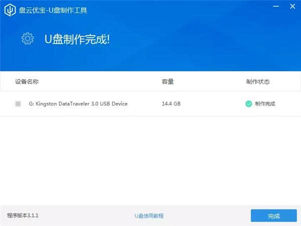 5.耐心等待,u盘完成后点击【完成】。