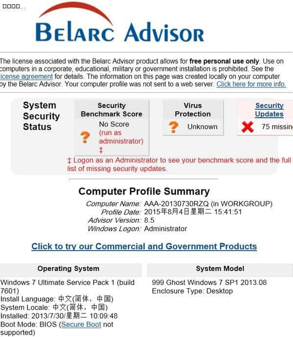 Belarc Advisor系统要求