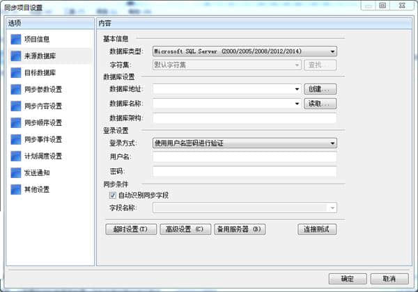 3.切换到“源数据库”选项卡,填写同步的源数据库。