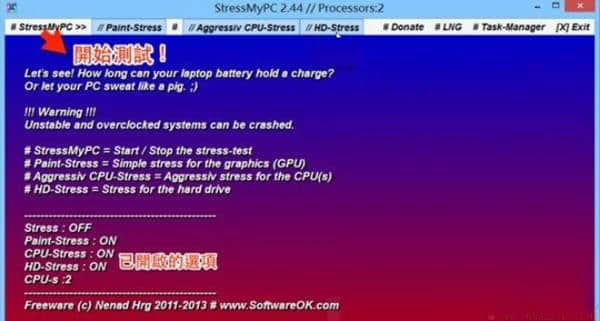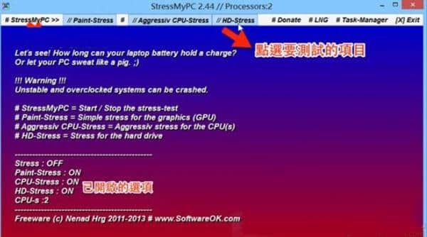 2.一个简单的图形卡,中央处理器和硬盘压力工具