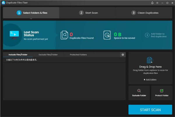 1.选择所有需要扫描的文件以删除那些重复的文件。